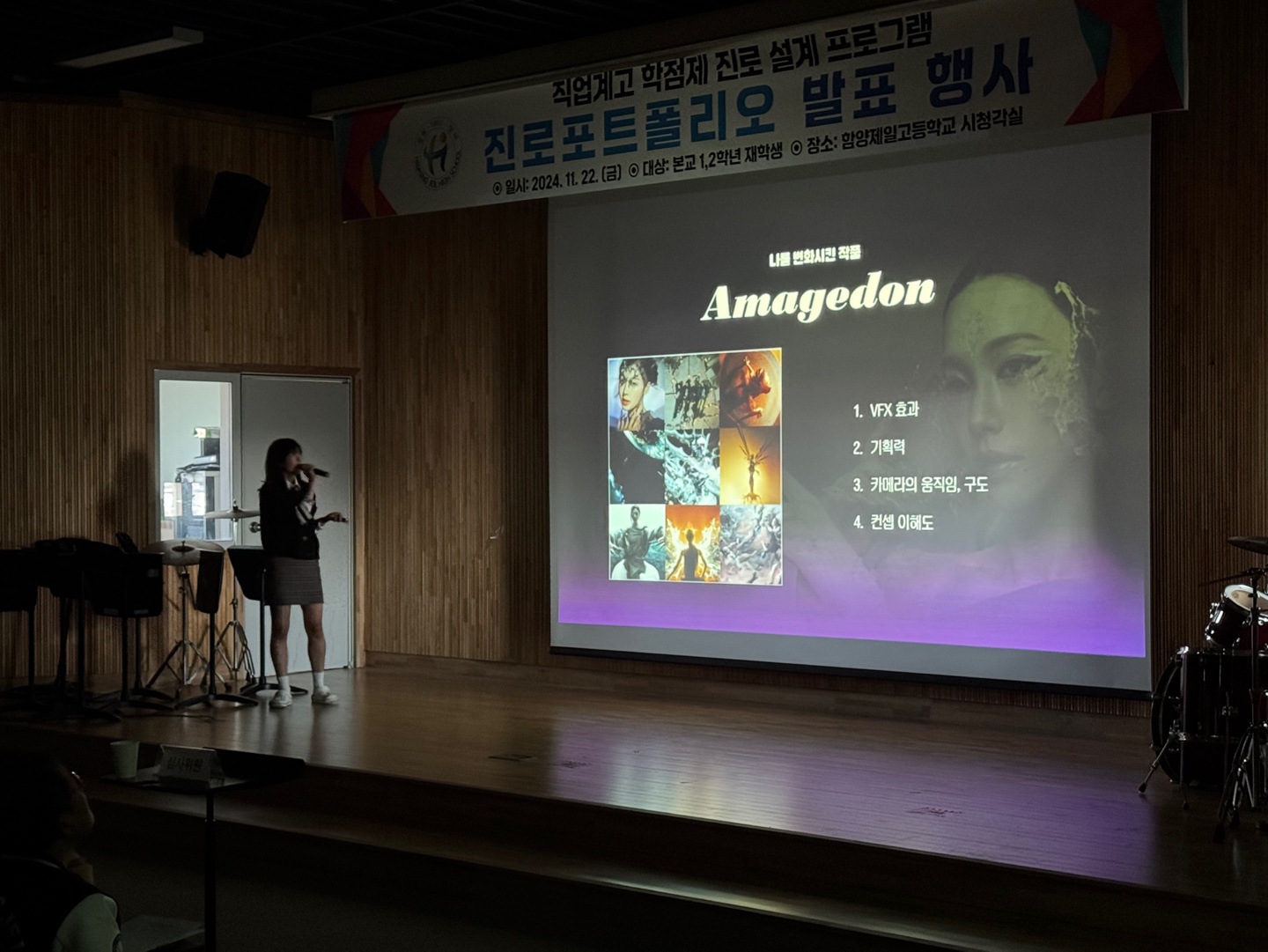 함양제일고등학교(교장 정병주)는 '진로포트폴리오 발표'를 주제로 희망 진로에 관해 깊이 생각하여 발표하는 시간을 가졌다. 참가한 학생들 뿐만 아니라 발표를 들은 학생들도 자신의 진로에 대해 깊이 탐구하고 설계하는 것의 중요성을 깨달았으며 자신의 진로를 적극적으로 탐색해봐야겠다라는 소감을 남겼다.