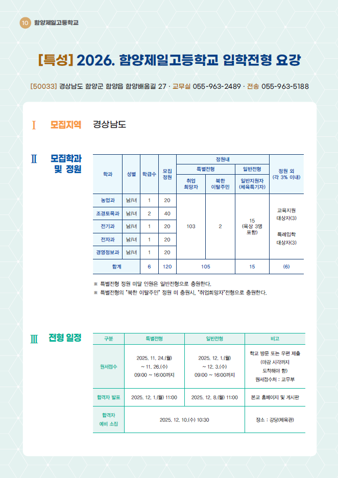 2026학년도 함양제일고등학교 입학전형 요강 안내
