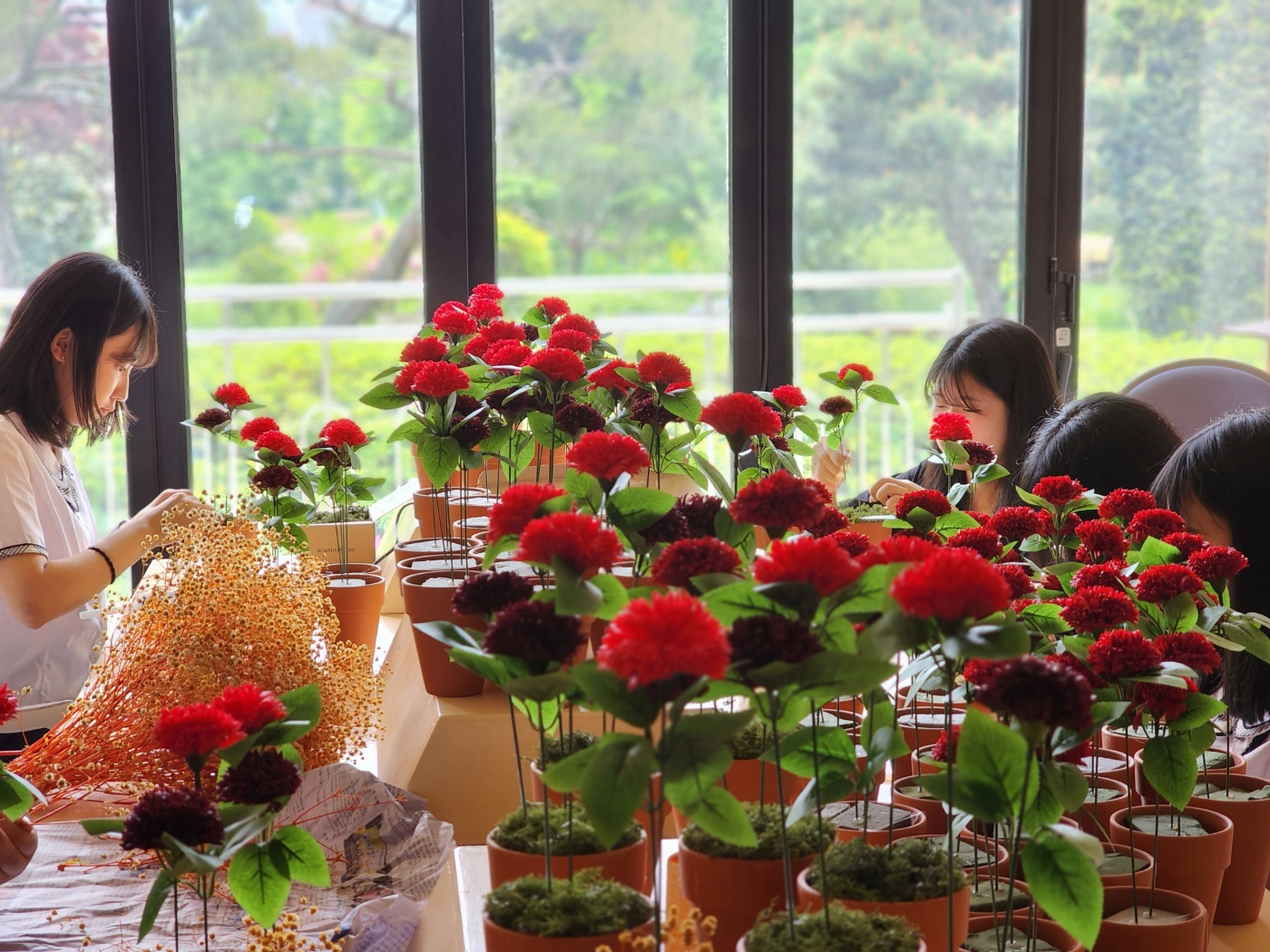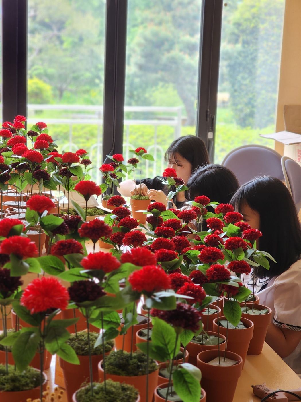 5월 15일 스승의 날을 축하하기 위하여 5월 12일 2학년 화훼장식 선택반 학생들이 꽃제작을 하는 모습입니다^^