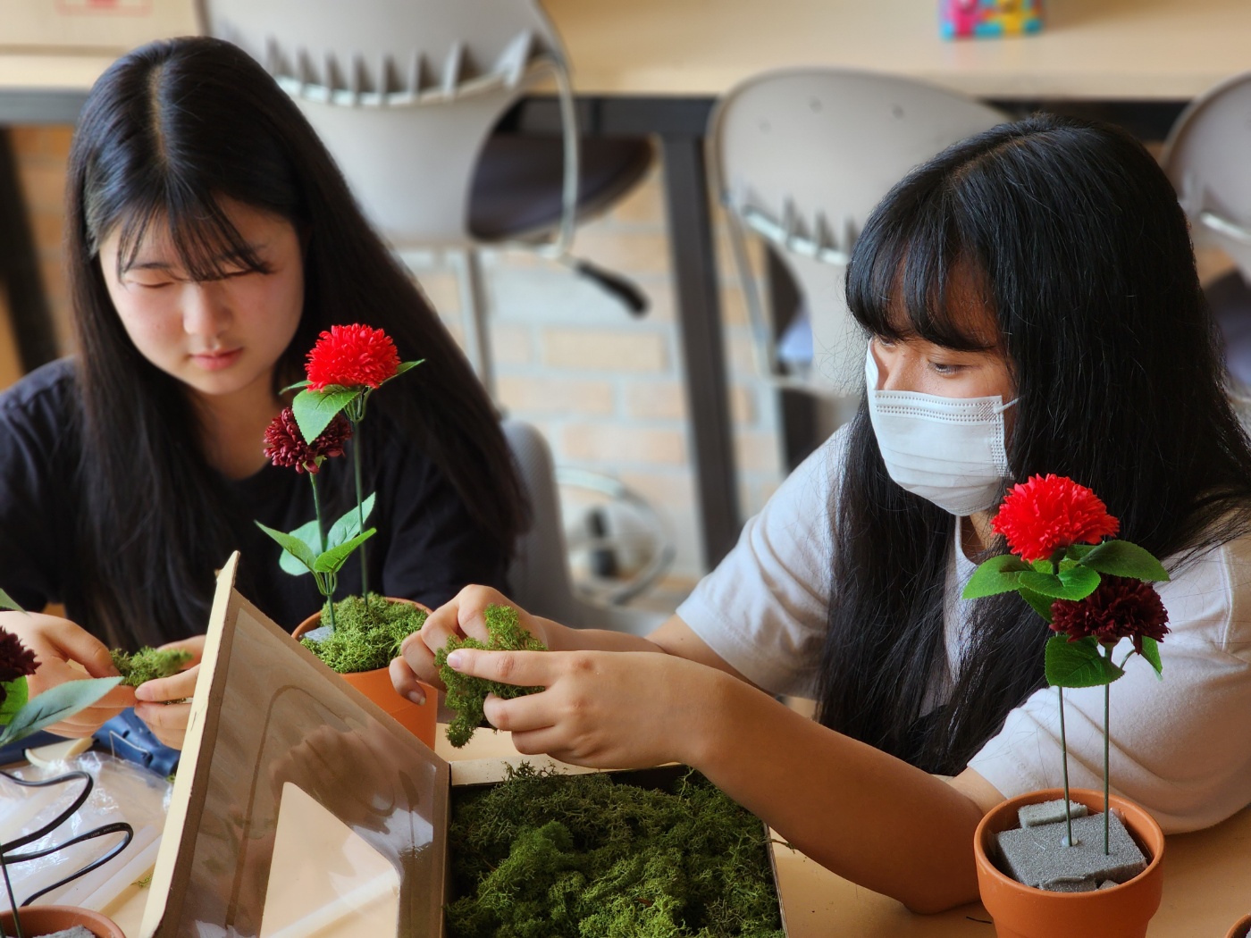 꽃 장식 작품을 만든 학생들이 더 기뻐하는 보람된 수업을 진행할 수 있었습니다~