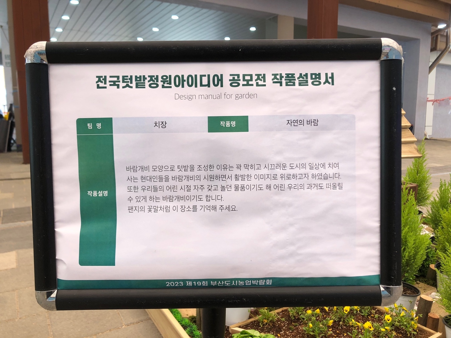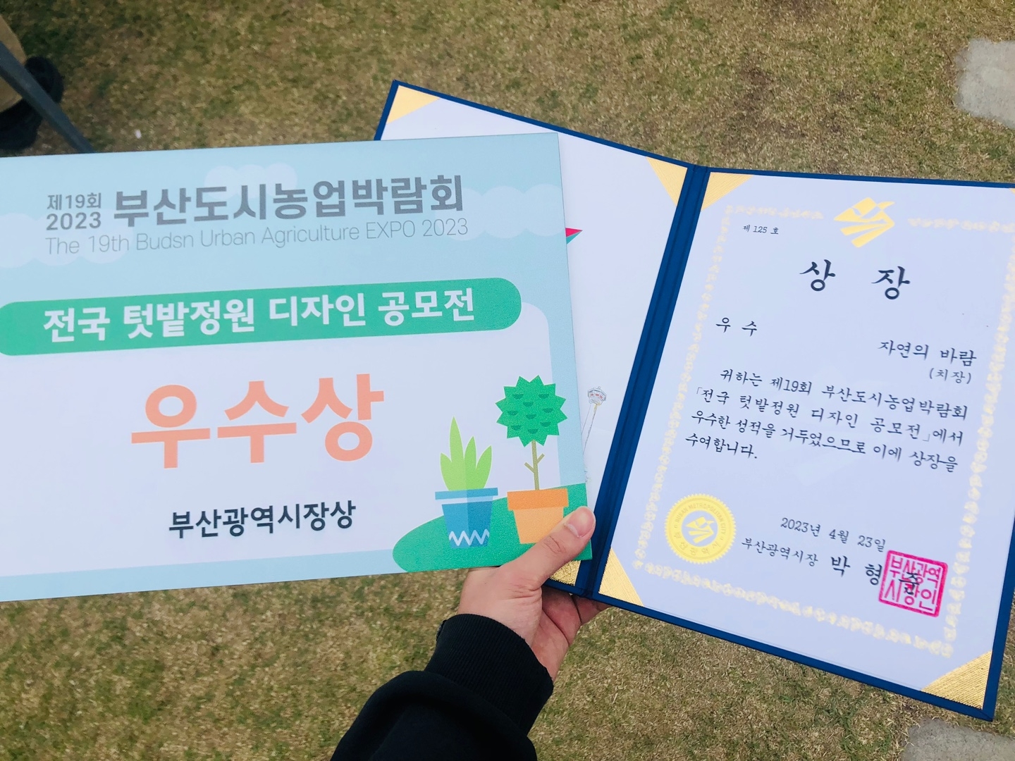 농과(농업과 조경토목과) 학생들이 제 19회 2023 부산도시농업박람회에서 개최한 전국 텃밭정원 디자인 공모전에서 우수상을 수상하였습니다!!!!!