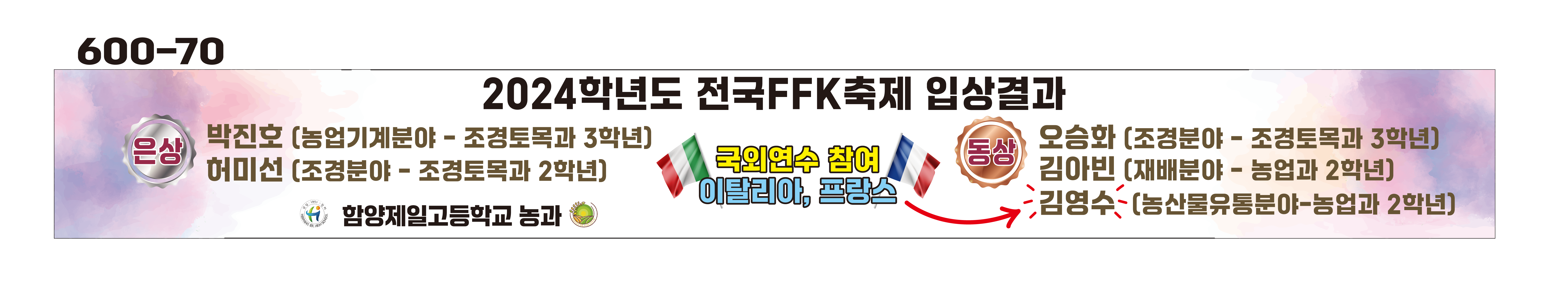 2. 전국 FFK에서 은상과 동상을 수상한 학생 2명이 프랑스와 이탈리아로 해외연수를 6박8일간 가게 되었습니다!