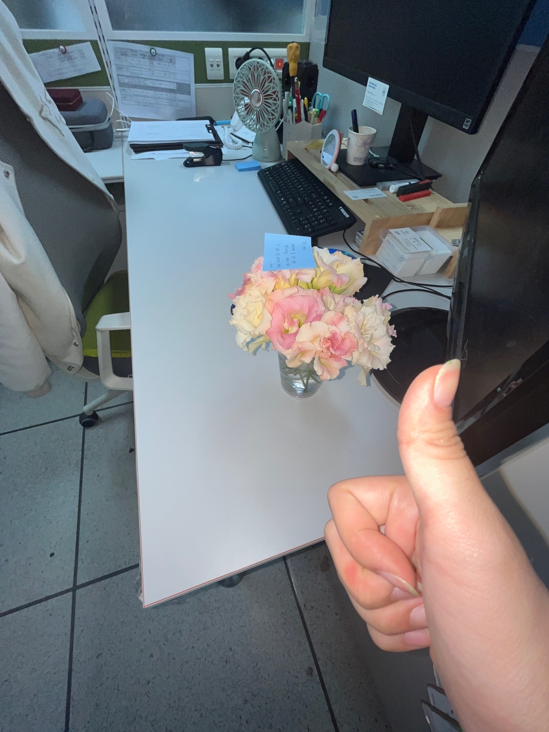 농과(농업과, 조경토목과) 학생이 화훼장식 후 남은 꽃을 활용하여 선생님께 꽃을 선물하였습니다.