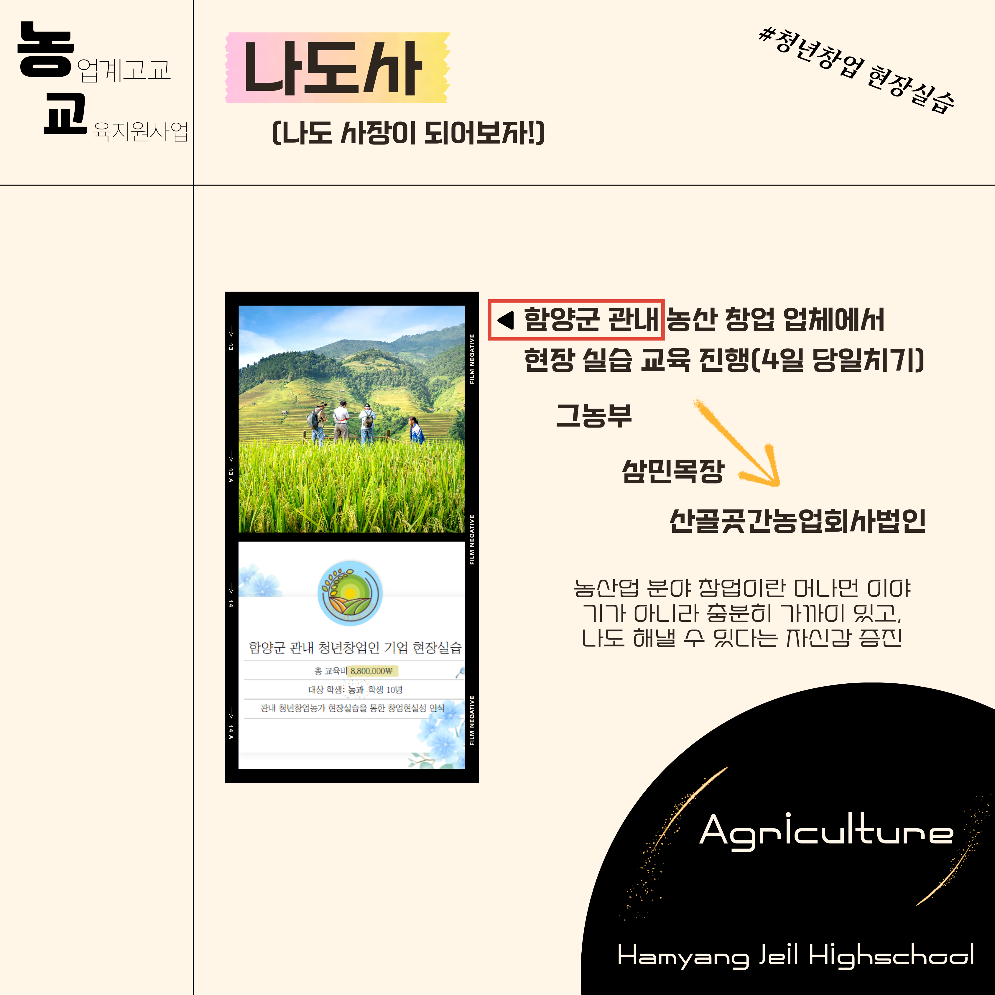함양제일고등학교 농과(농업과, 조경토목과)가 농업계학교 고교지원사업에 최종 선정되어