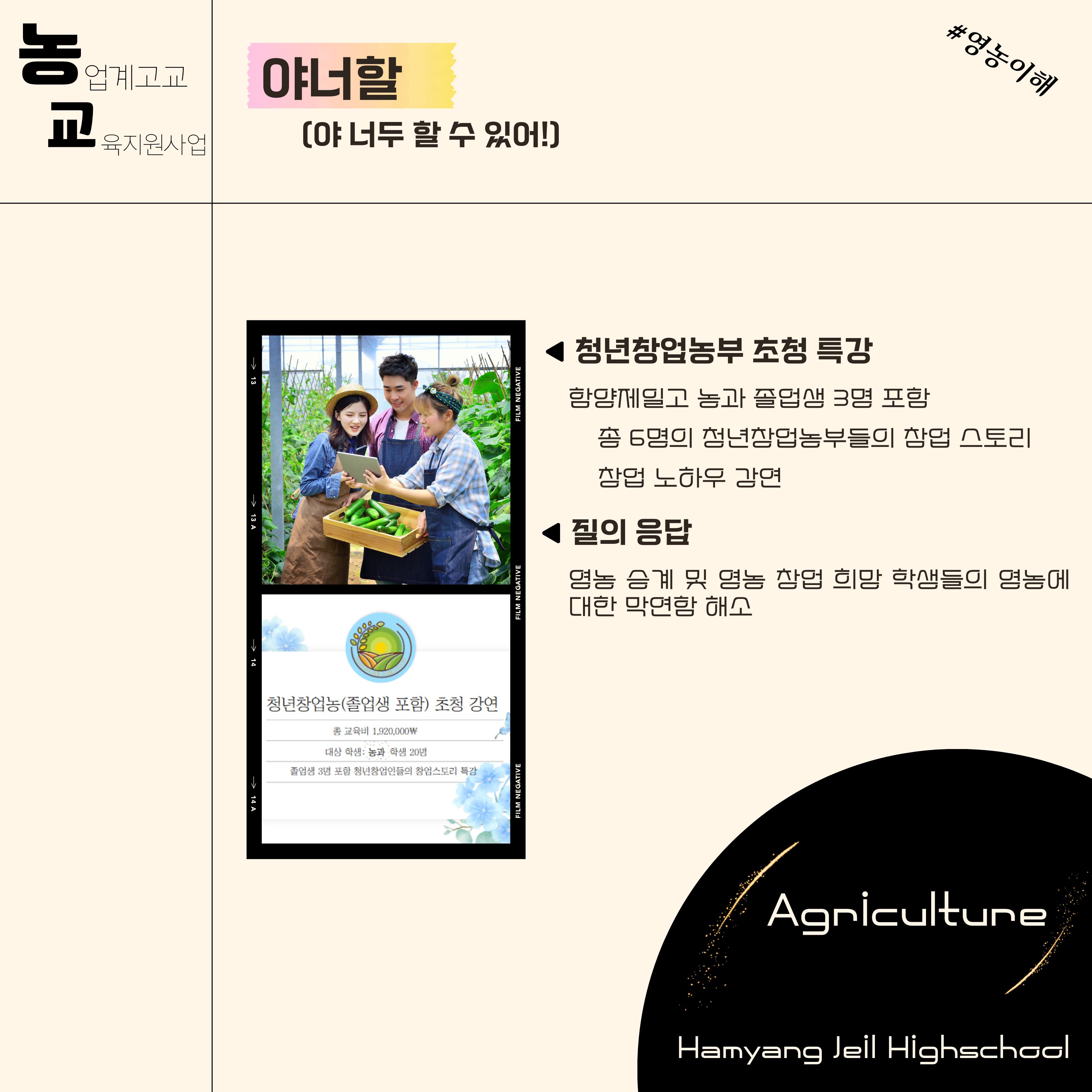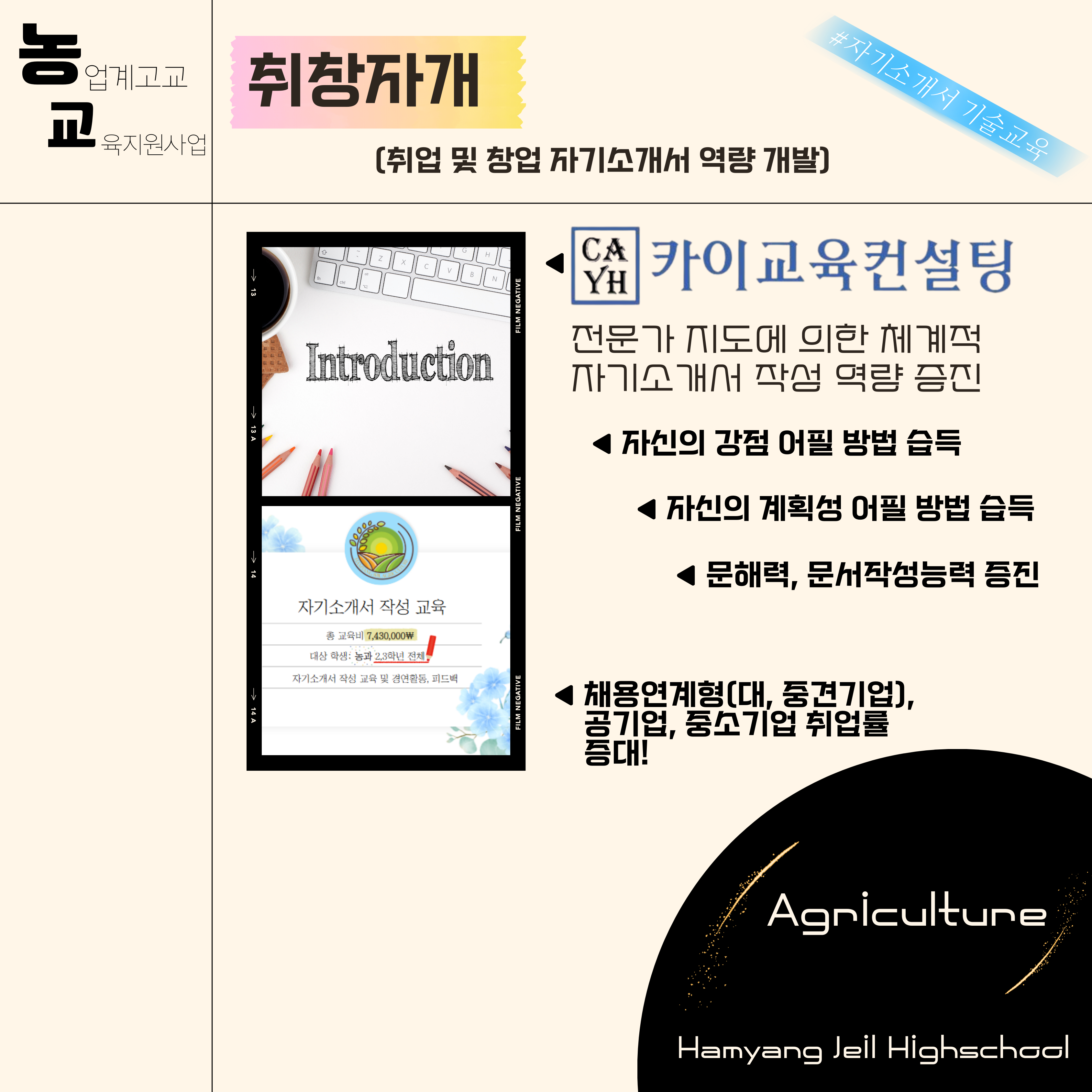 이 지원금으로 사진과 같은 프로그램을 농과학생들을 대상으로 실시하여 학생들의 취업 역량을 늘려나갈 것입니다!!!