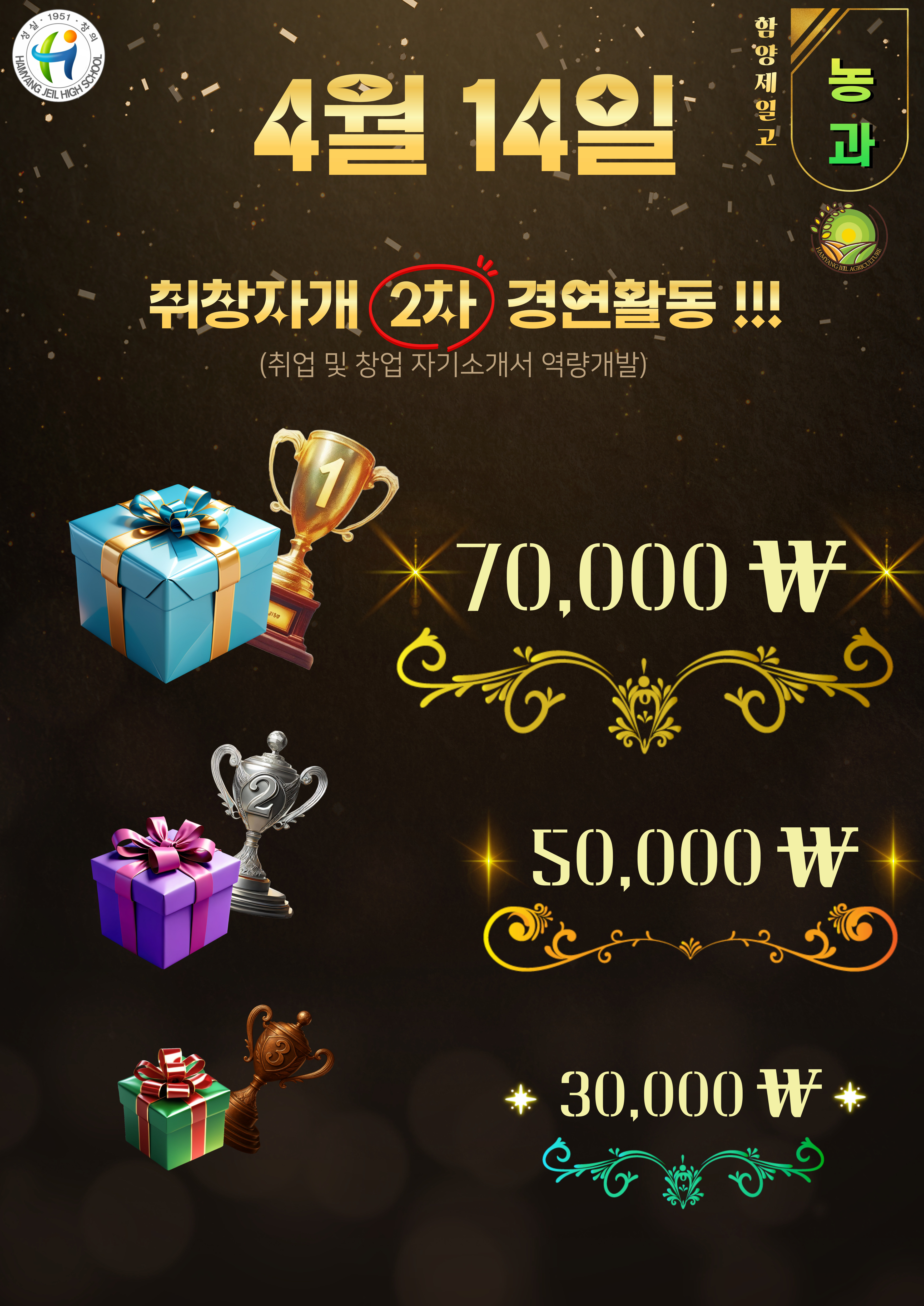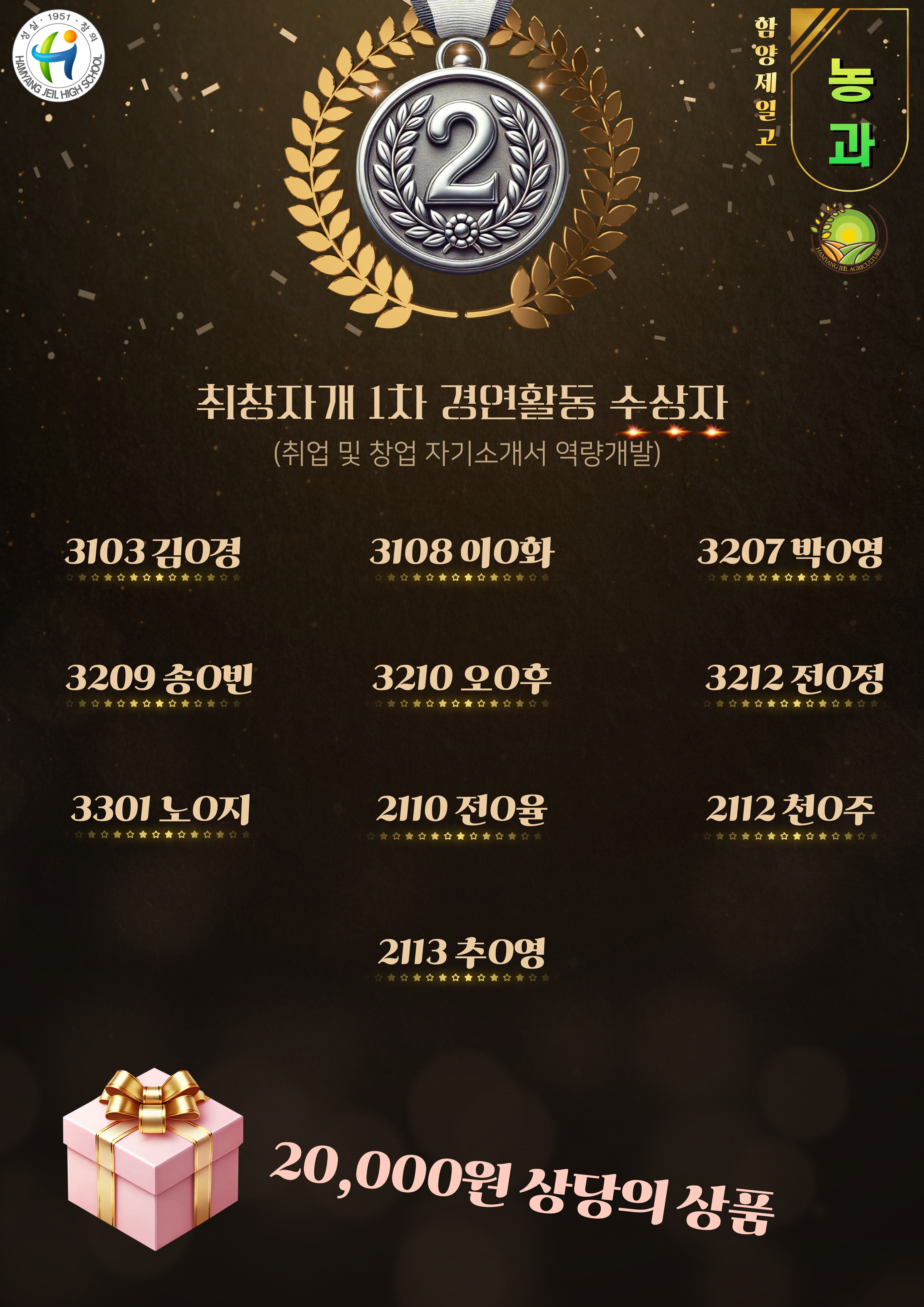 2차 운영에서는 참여 학생 1인 1개로 작성된 118개의 자기소개서를 자기소개서 전문가가 채점 후 30명의 우수 작성자를 선별하여 시상식을 진행하였습니다. 수상한 학생들은 교육홍보물을 급에 맞게 받게됩니다!