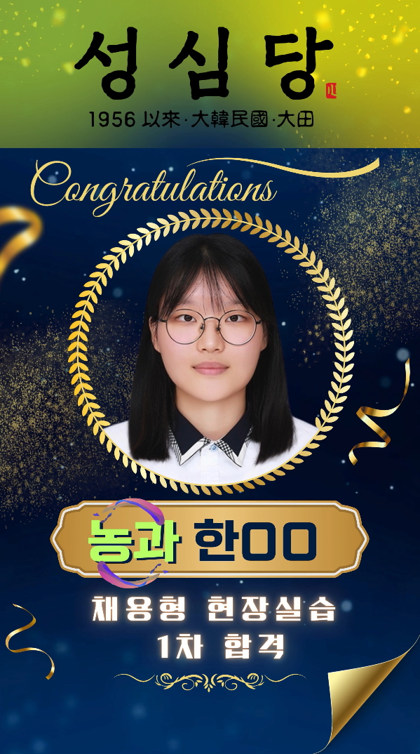 함양제일고등학교 농과(농업과, 조경토목과) 한OO 학생이 대전 성심당의 채용형 현장실습 1차 전형에 합격하였습니다!끝까지 최선을 다해 면접 지도해서 최종합격 시켜보겠습니다.다들 응원해주세요!함양제일고등학교 농과(농업과, 조경토목과) 입학시 제과 및 제빵기능사 취득을 위한 실습실(무한 연습 가능, 주말연습 가능, 빈 수업시간 연습 가능)과 모든 실습재료(필요한 만큼, 합격할 때까지)를 농과예산으로 지원합니다.