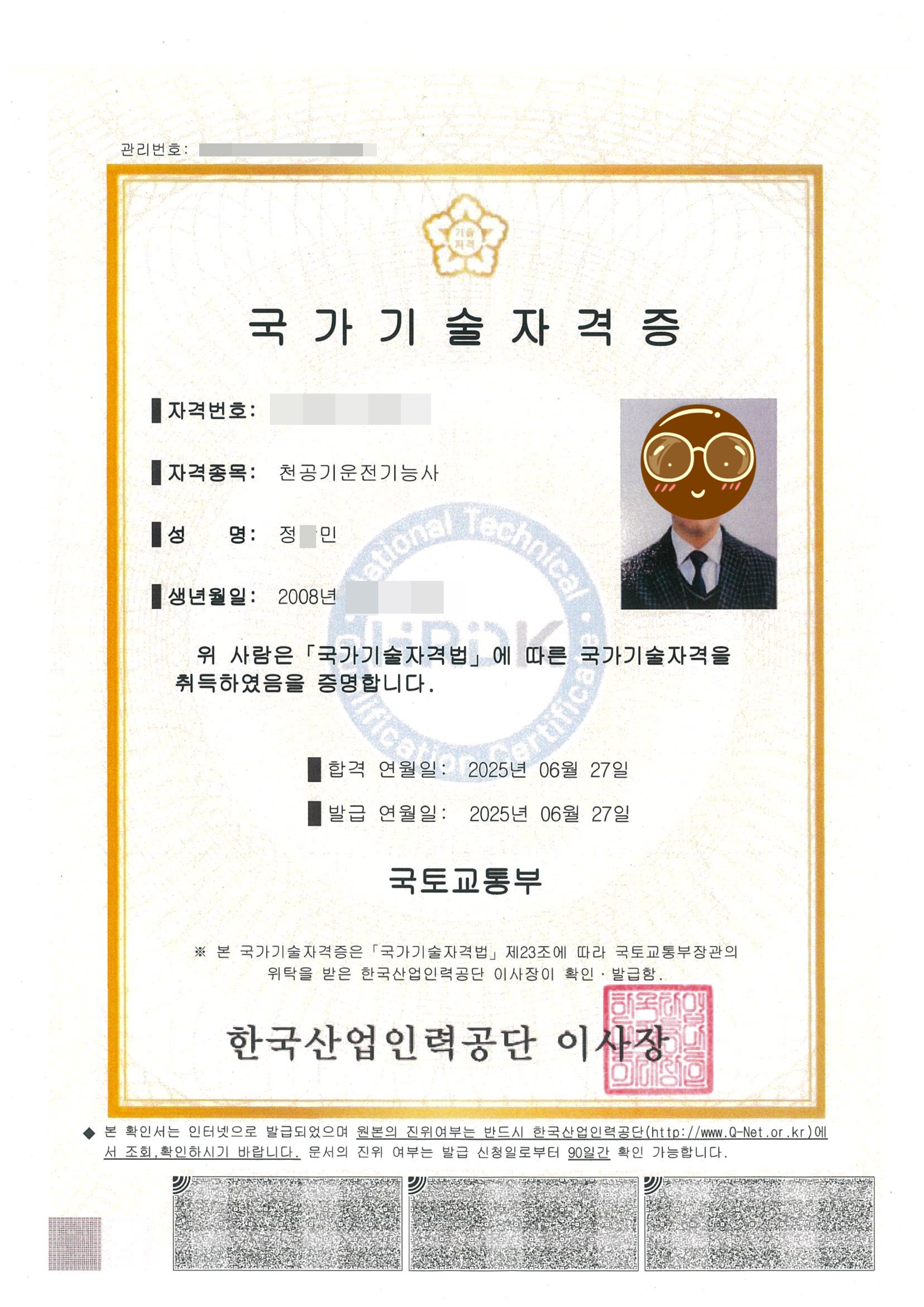 함양제일고등학교 농과(농업과, 조경토목과) 정O민 학생이 함양제일고등학교 설립이래 최초로 천공기운전기능사를 고등학교 재학 중에 취득하였습니다!